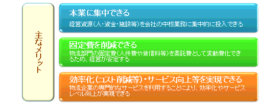 実際に荷主企業にとって、物流業務は非中核的業務と位置づけられる場合がほとんどだと思いますが、アウトソーシングによって、自社の貴重な人・モノ・金を中核業務に振り向けることが何より重要です。また、財務的に見ると、固定費の削減という効果もあります。